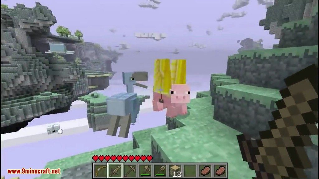 - Flying Pigs can also be found wandering around the Aether, and occasionally flying freely through the air. These creatures can be saddled with a Saddle, and flown around without having to deal with a taming process. This allows players to quickly hop into the action. However, Flying Pigs can only jump once, and do not have the privilege of mid-air jumps like the powerful flying Moas.
