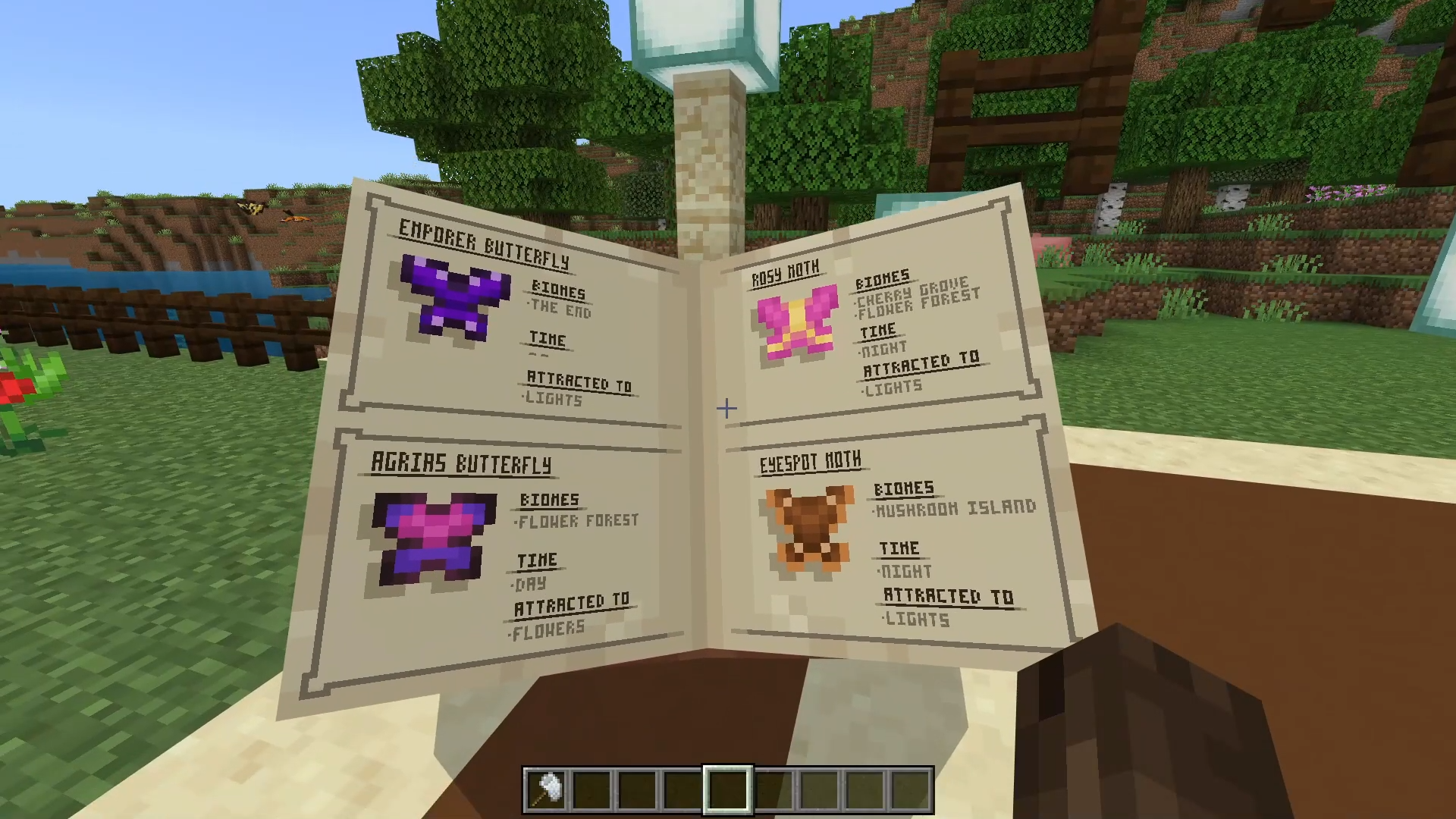 Add a touch of magic to your world with the Butterflies & Moths Add-On, featuring 16 vibrant species that spawn naturally across different biomes. Catch them with a butterfly net, craft decorative jars to showcase your collection, or wear butterfly wings to gently float through your adventures—bringing life, color, and whimsy to every corner of your survival experience.