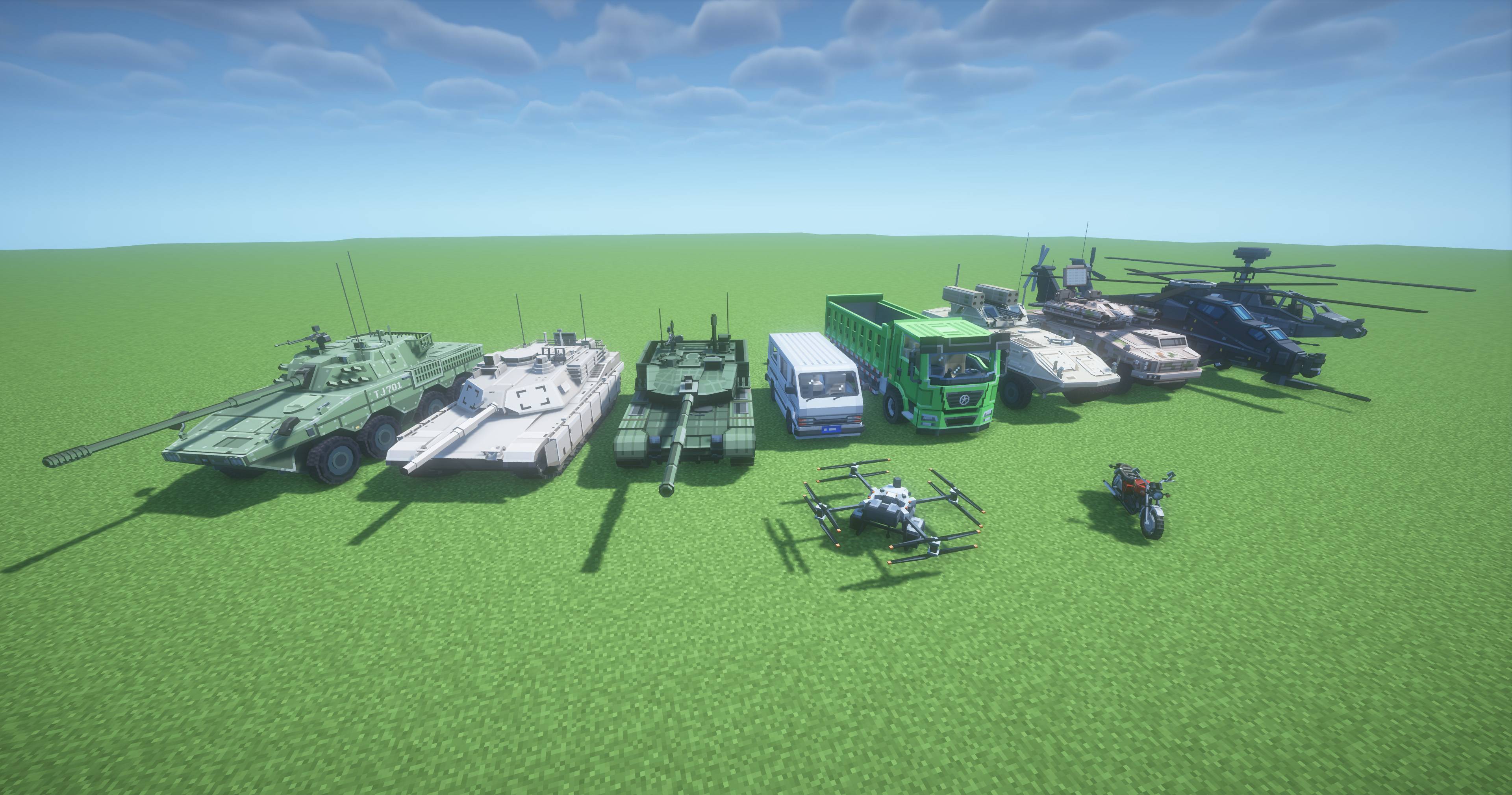 Custom Vehicle Creation Mod adds a wide variety of vehicles and lets you build your own vehicles using data packs. It gives you an excellent driving experience with realistic physics and accurate collision.