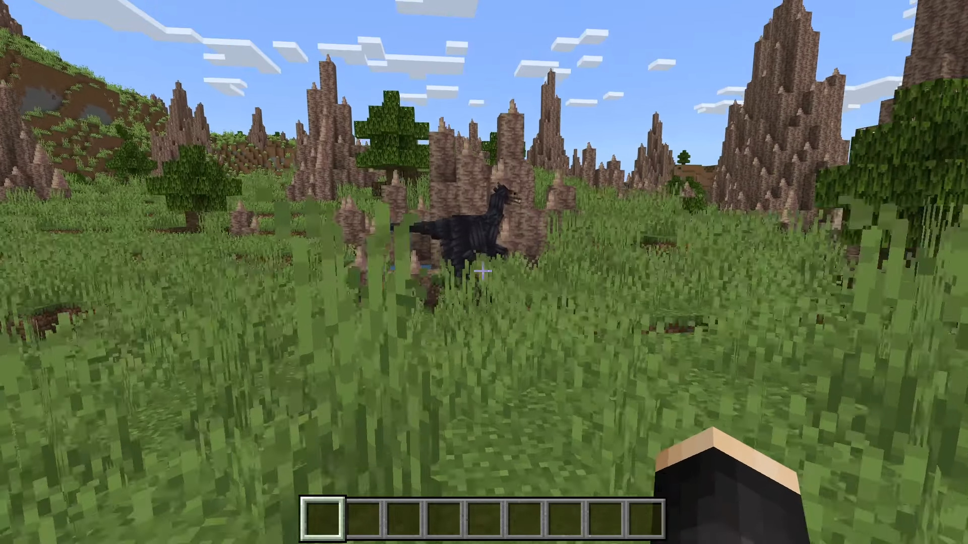 Dinosaur Biomes Map (1.21) includes custom Jurassic-themed biomes, over 15 new dinosaurs that players can tame and ride, plus new items like 18+ utility tools, 7 Jurassic weapons, 7 armor sets, 9 dinosaur-themed materials, and a special wandering trader. Worlds generated with it use random start areas for variety.