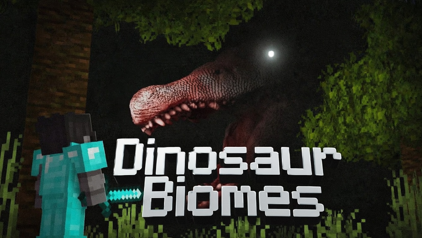 Dinosaur Biomes Map (1.21) includes custom Jurassic-themed biomes, over 15 new dinosaurs that players can tame and ride, plus new items like 18+ utility tools, 7 Jurassic weapons, 7 armor sets, 9 dinosaur-themed materials, and a special wandering trader. Worlds generated with it use random start areas for variety.
