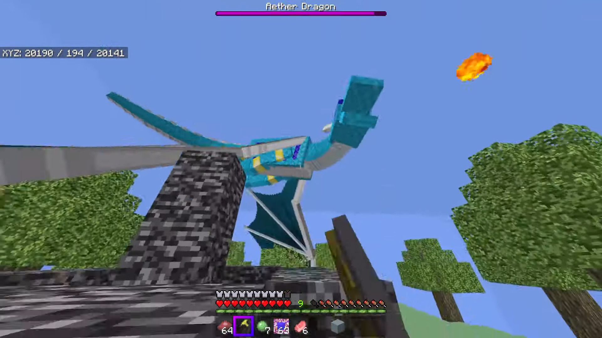 - *Holding a flame stick and pressing the jump key, you can manipulate the dragon to fire the fireball;