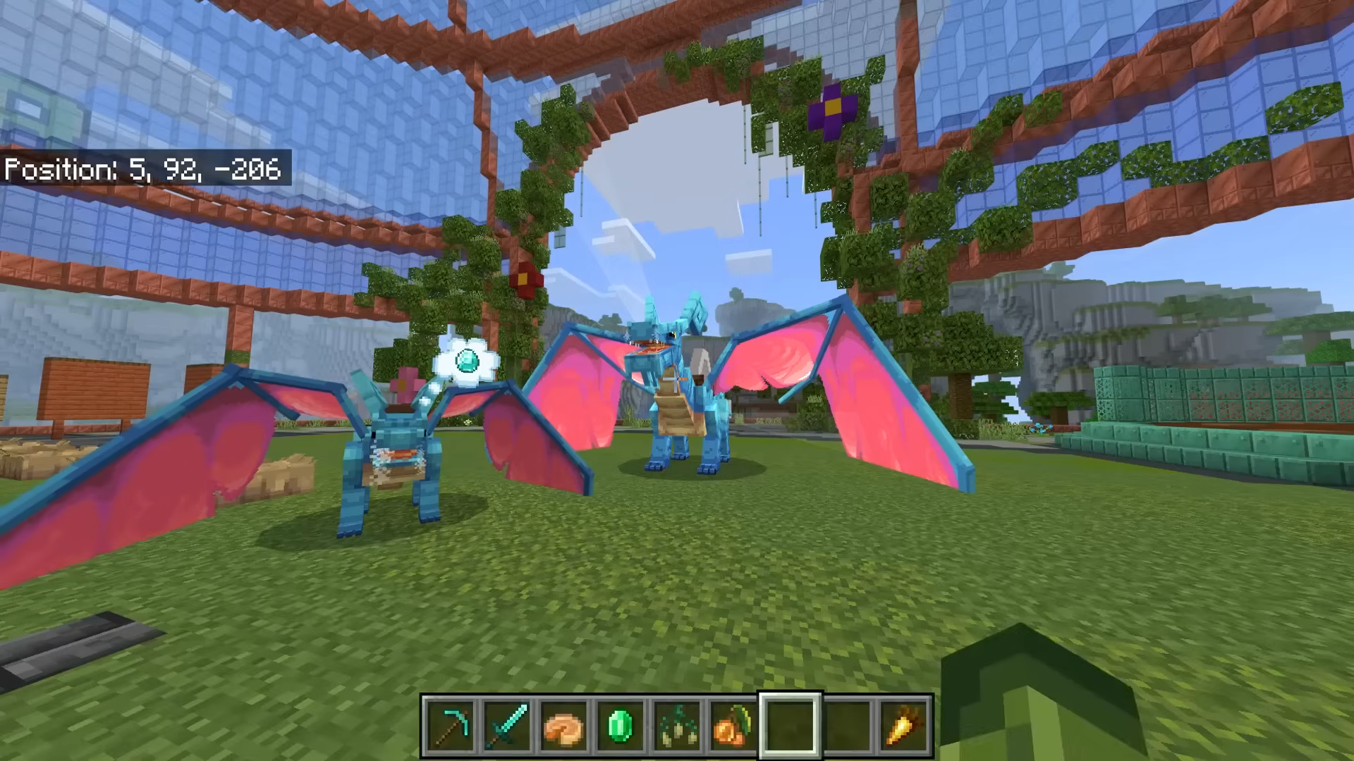 Bring the fire and magic of epic dragons into your world with this thrilling Add-On! Each dragon type evolves through multiple stages, unlocking powerful new abilities as they grow. Take to the skies and battle fierce monsters alongside your winged companions, personalize their appearance to suit your style, and harness the fast travel ability to journey across vast lands with ease. These loyal beasts can even scavenge diamonds, making them more than just mounts—they’re treasure hunters, too! With custom weapons and the ability to forge armor for both you and your dragons, the bond between rider and beast has never been stronger.