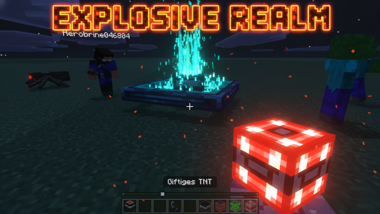 Explosive Realm Map (1.21) unleashes total chaos with 51 crazy explosive types, each packed with overpowered abilities, 3D explosion effects, stunning animations, and immersive custom sounds, particles, and textures. Test your firepower inside a massive testing facility, craft powerful explosives using custom recipes, and wield a brand-new custom tool built for destruction. From acid, poison, and stun blasts to gravity, thunder, lava, and even End, Nether, and ore-based explosives, this map delivers nonstop action and creative mayhem-and that’s only the beginning. Warning: massive explosions ahead!