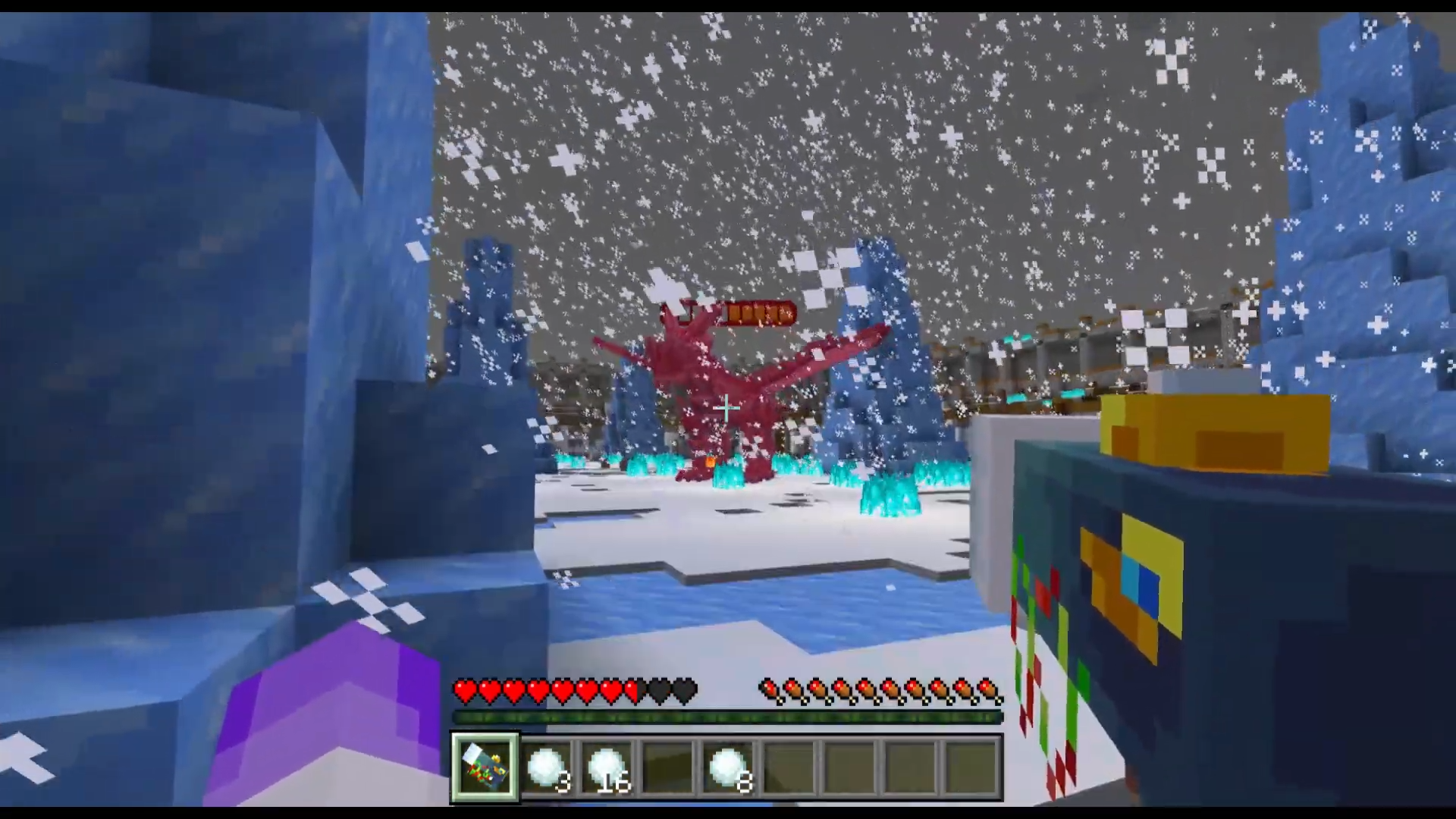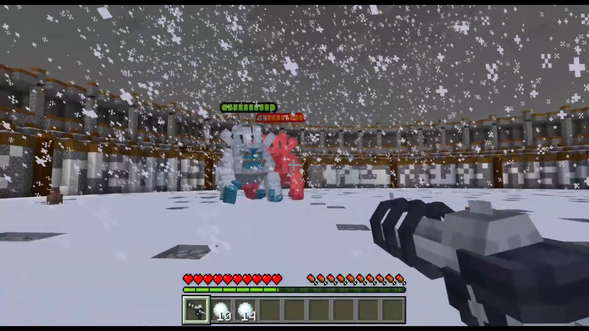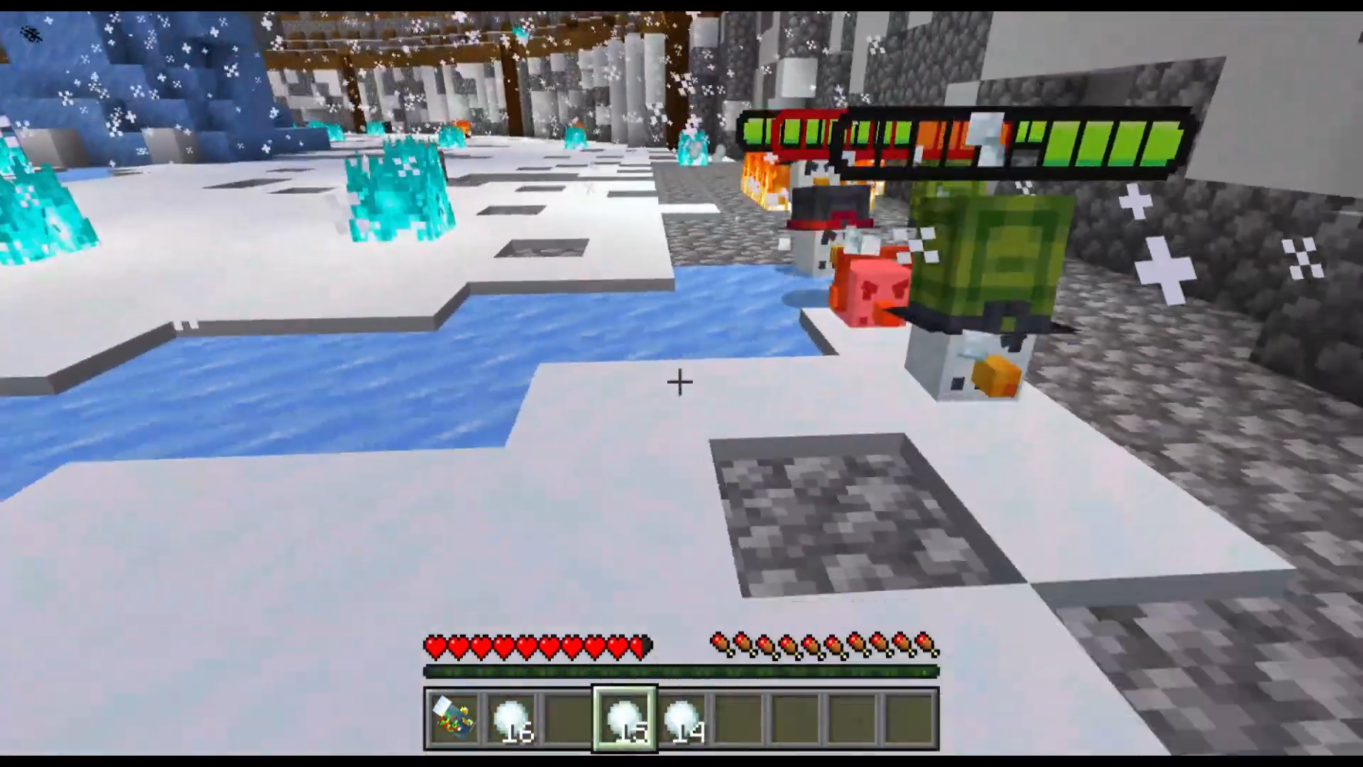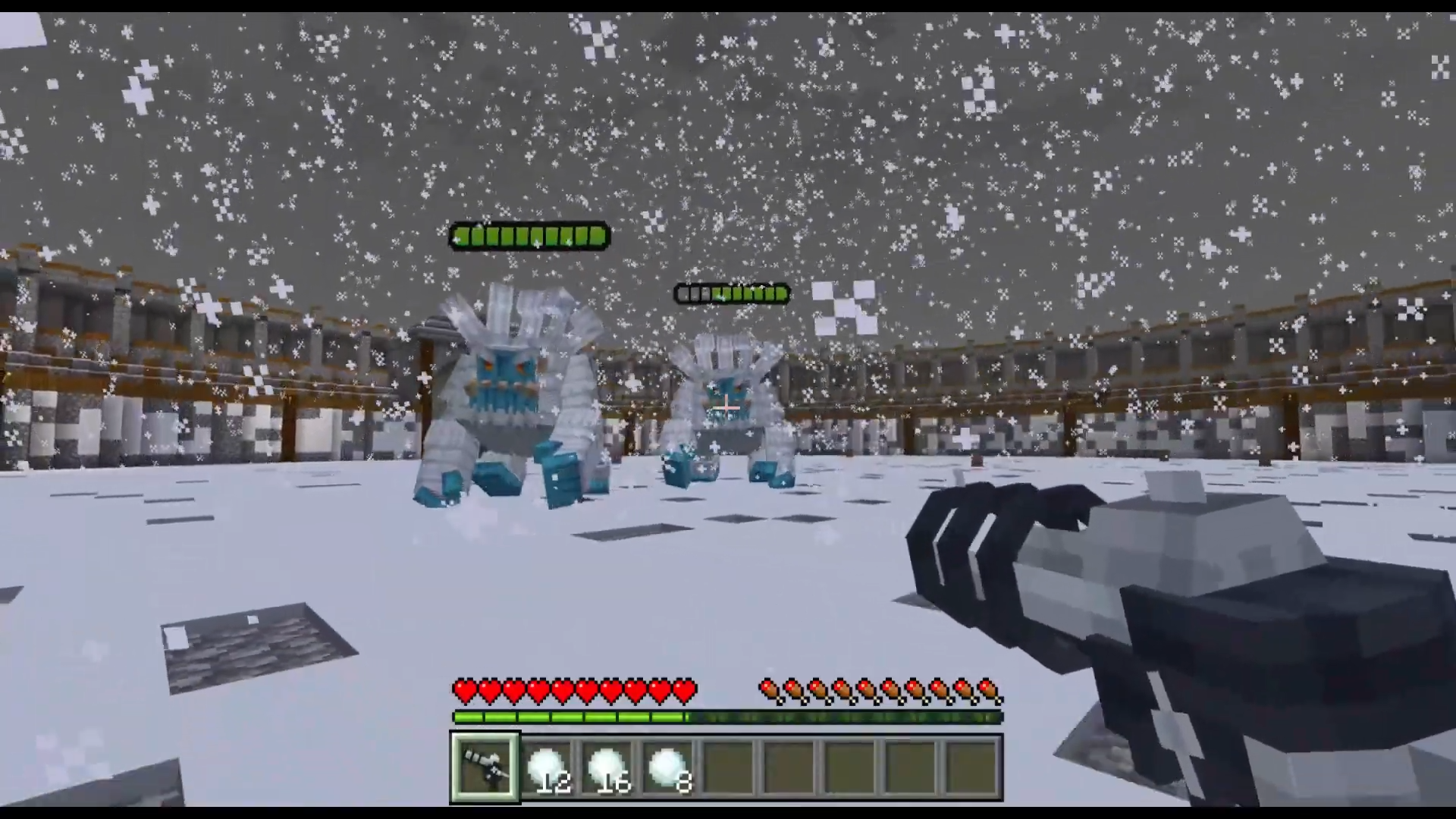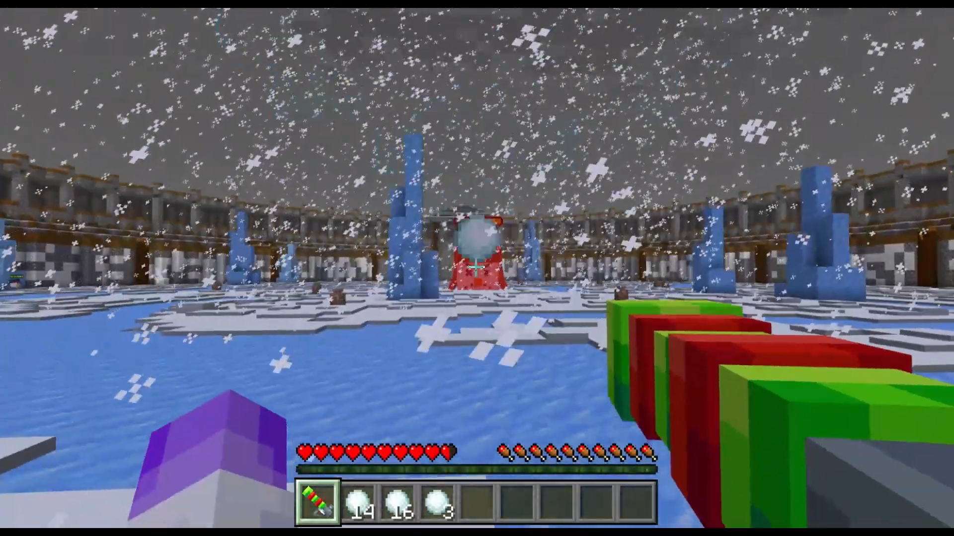 Glacial Combat Map (1.26, 1.21) is an intense Minecraft arena map where you must defeat powerful bosses to progress through each stage. Gather snowballs from scattered vases to unlock new battles, but stay on guard as swarms of small monsters can attack at any time. Use special snowball weapons, discover hidden surprises, and prove your bravery in this fast-paced and challenging adventure.