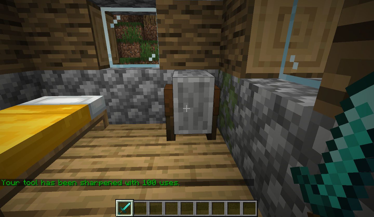 - Sharpen tools by Sneak+Right-Clicking any tool on the grindstone.