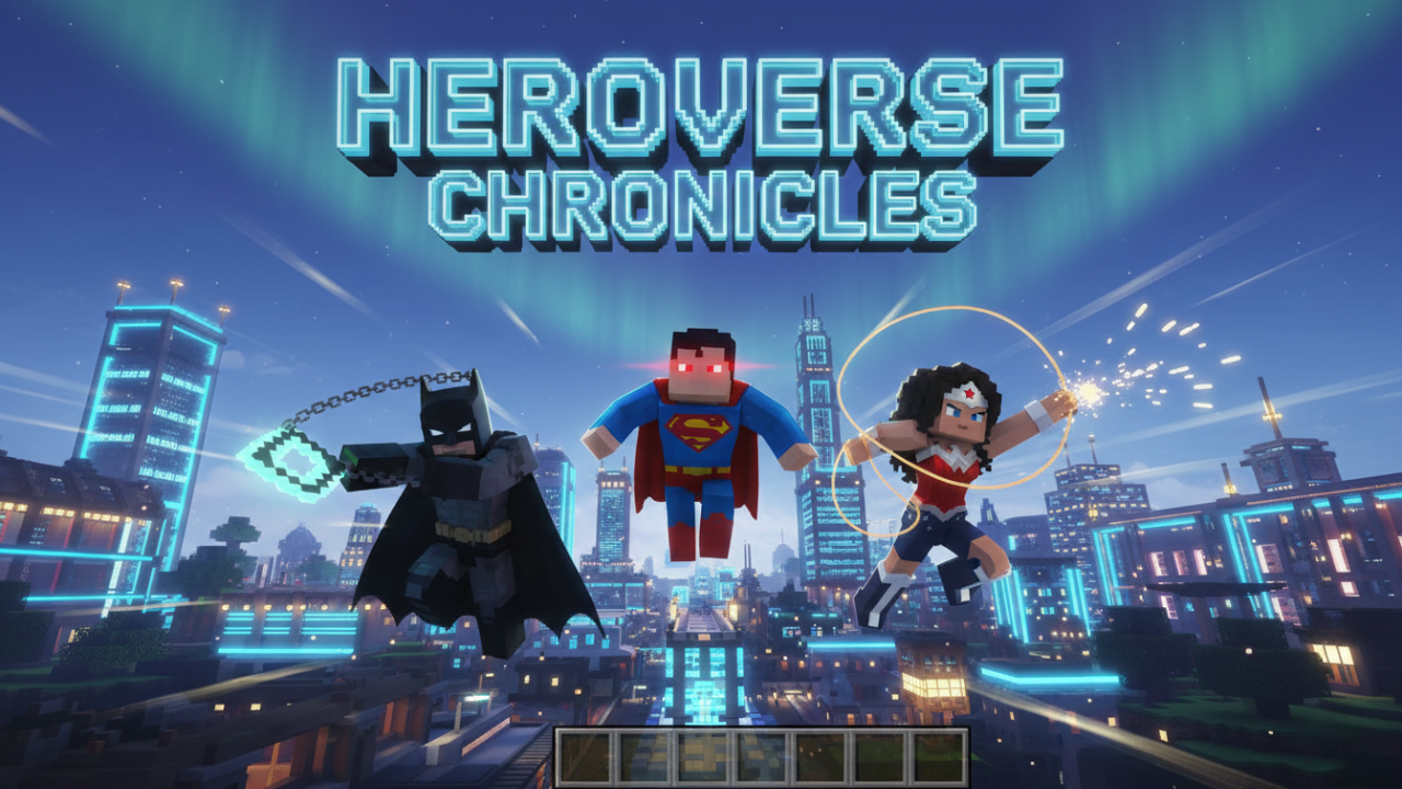 Heroverse Chronicles Addon (1.21) reimagines iconic comic-style heroes and villains in a fully original Minecraft Bedrock experience. Build your own worlds, start epic wars, and create intense battles alongside powerful characters inspired by legendary heroes. Designed with survival gameplay in mind, this add-on introduces new combat mechanics, unique minerals, custom structures, new entities, and formidable bosses-bringing a darker, action-packed superhero universe into your Minecraft world without relying on the original DC name.