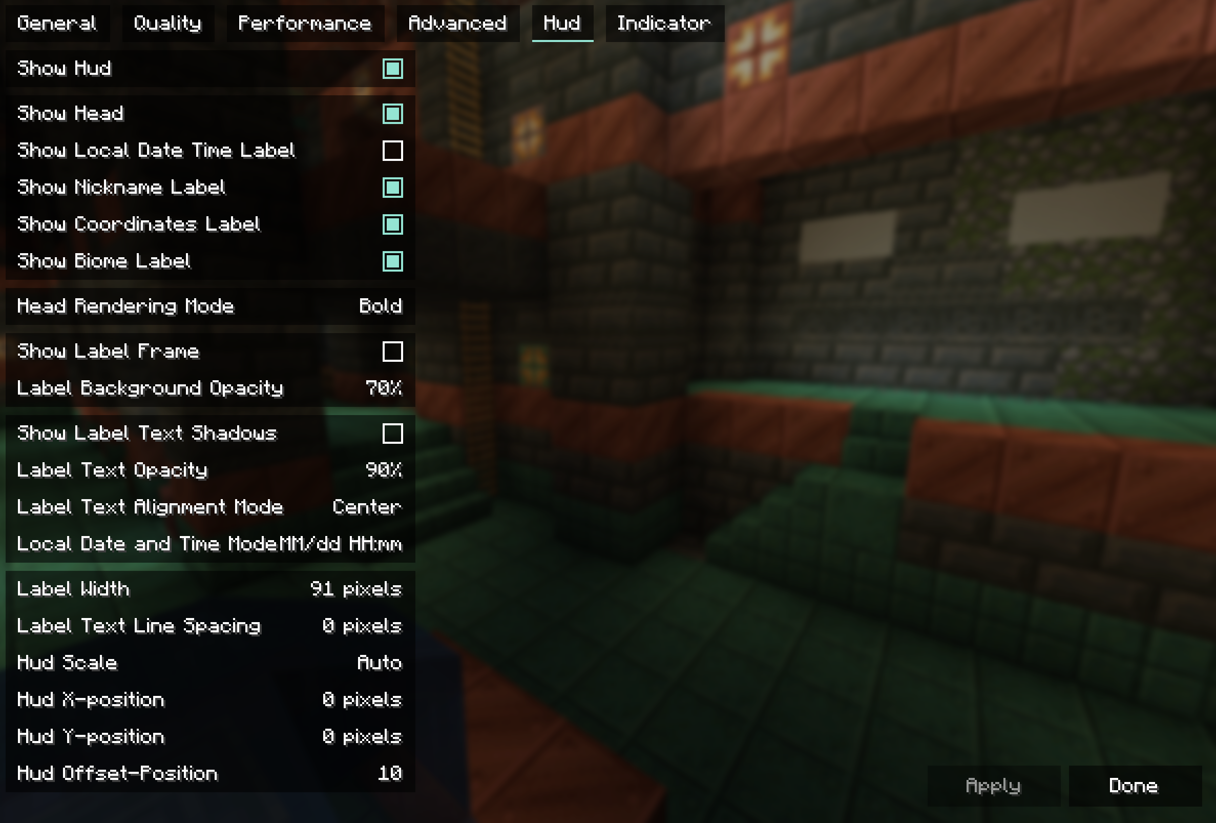 With Imagict Hud Mod [1.21.1] [1.20.6] [1.20.1], various useful information about the player will be displayed on the screen. You’ll be able to see your head, nickname, coordinates, biome, and indicators. The modification is highly customizable, allowing you to adjust the size and placement of these elements.