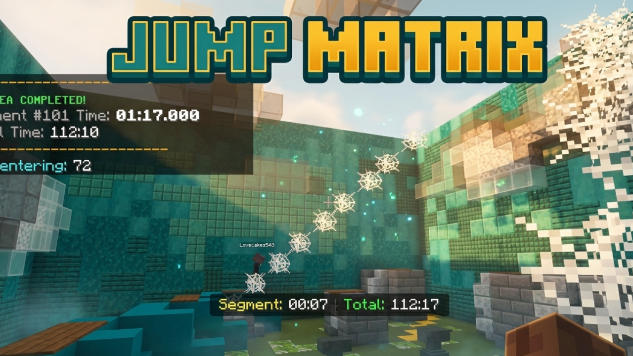 Jump Matrix Map (v26, 1.21) challenges your movement and timing in an exciting obstacle adventure in Minecraft. Test your abilities across complex jumping paths, clever puzzles, and grid-style stages designed to push your parkour skills to the limit. Race toward the finish while improving your best times with a built-in timer system and compete with friends to see who can complete the course the fastest. With 100 unique parkour levels to conquer, every jump brings a new challenge.