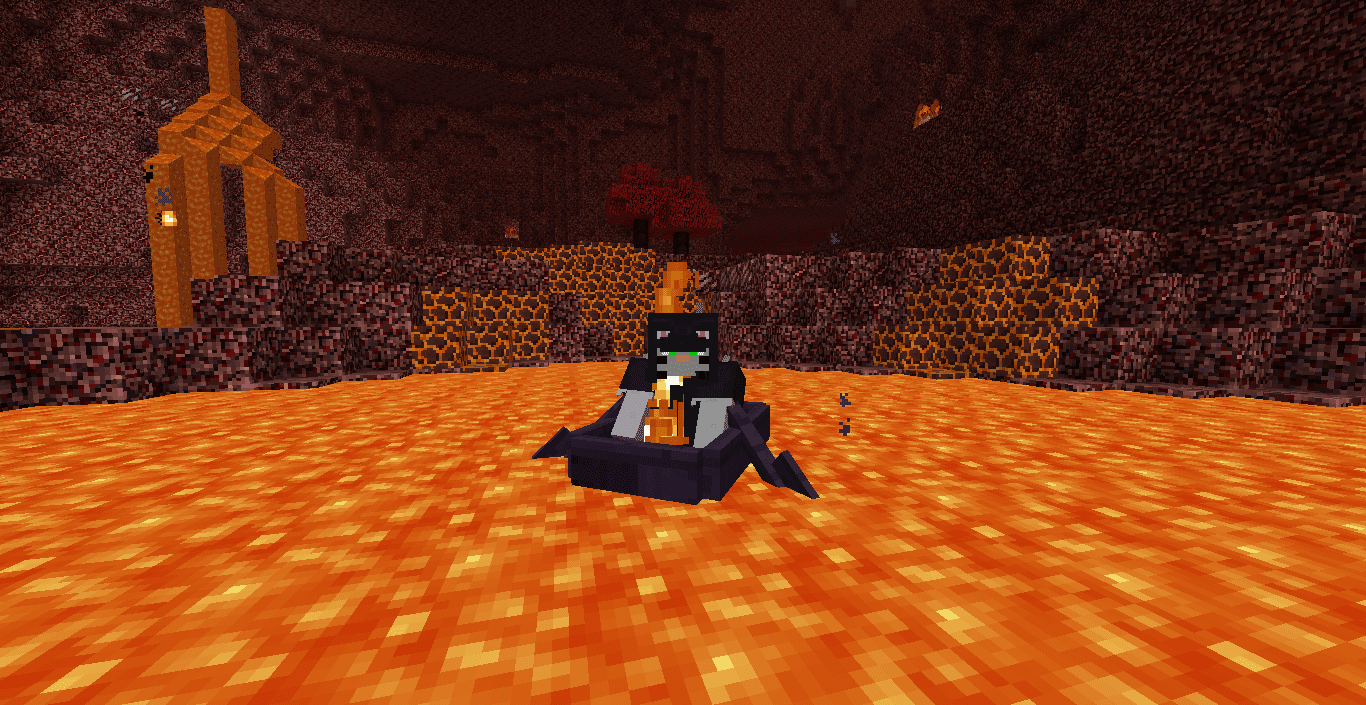 Travel in style with the Netherwood Boat! This fabulous boat, made with 5 Netherwood Planks, will be able to take you near and far! Not only does it allow you to sail across water, you can also sail unharmed across lava!