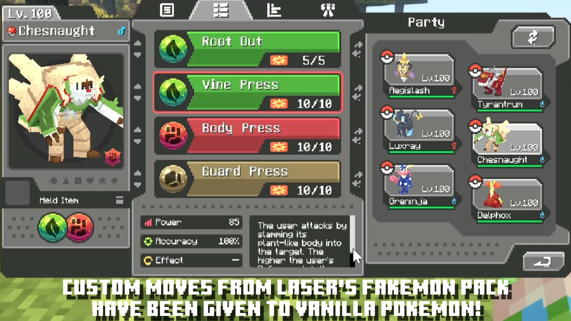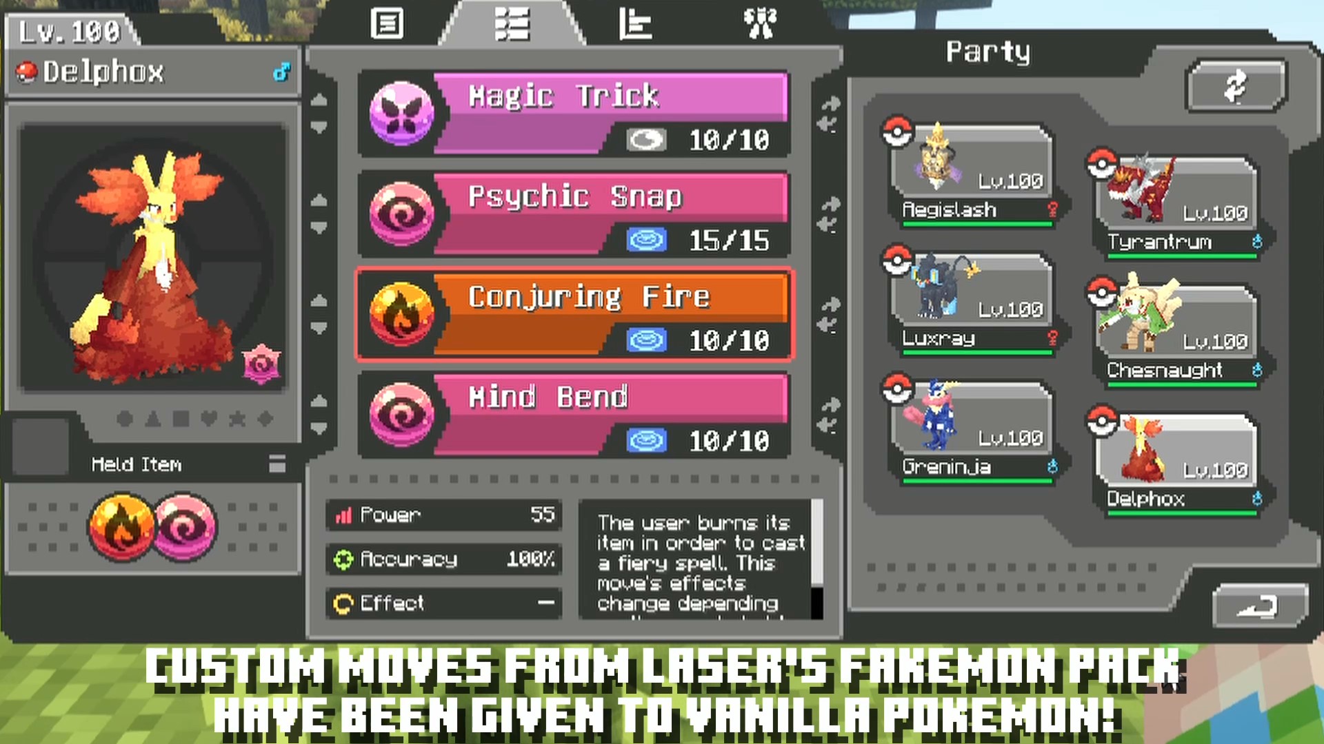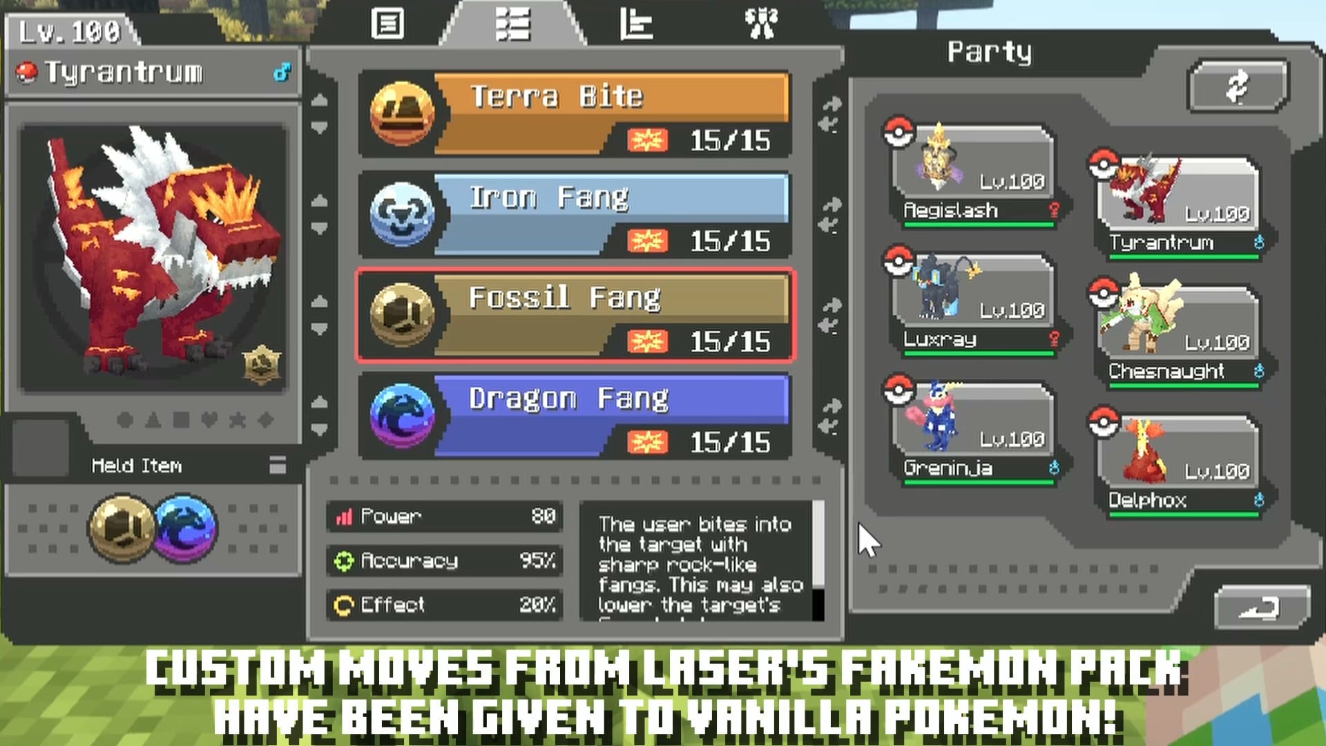 - Custom moves added to vanilla Pokemon species.