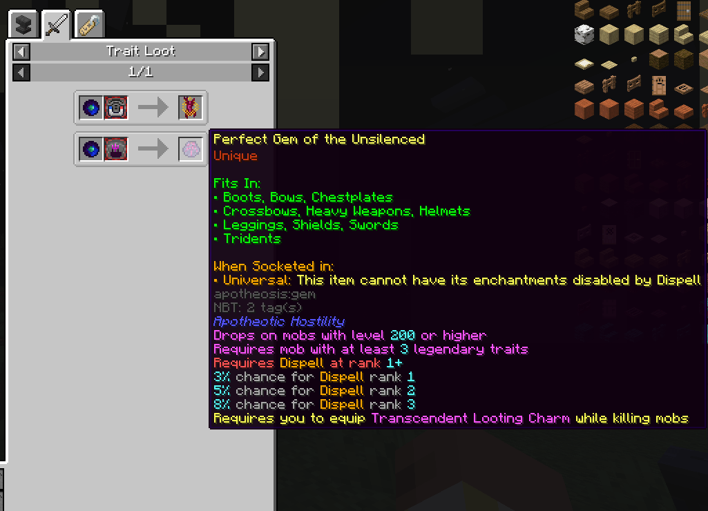 - Mobs with higher L2Hostility levels drop Apotheosis gems with better rarities.