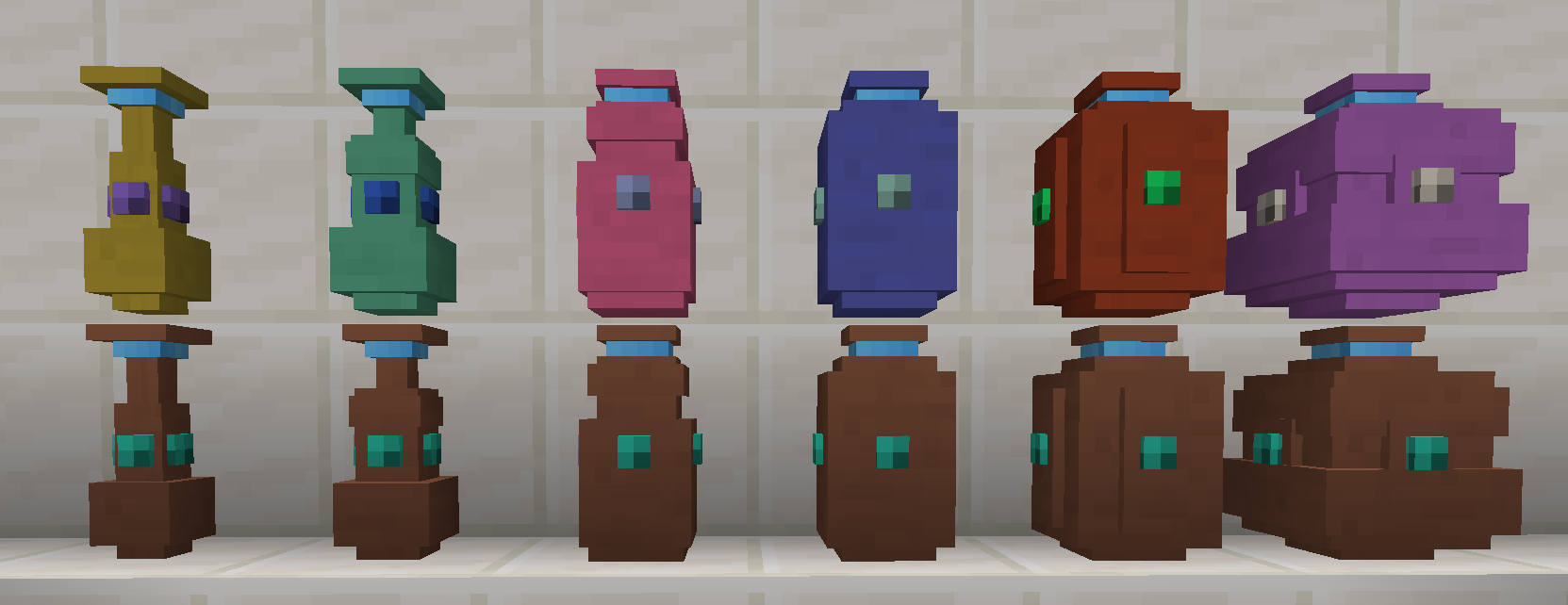 - They come in multiple sizes. The smallest urn stores only 9 items (1 row) while the largest stores 54 (6 rows). The smaller sizes are easier to craft than shulker boxes. Larger sizes are more difficult to acquire.