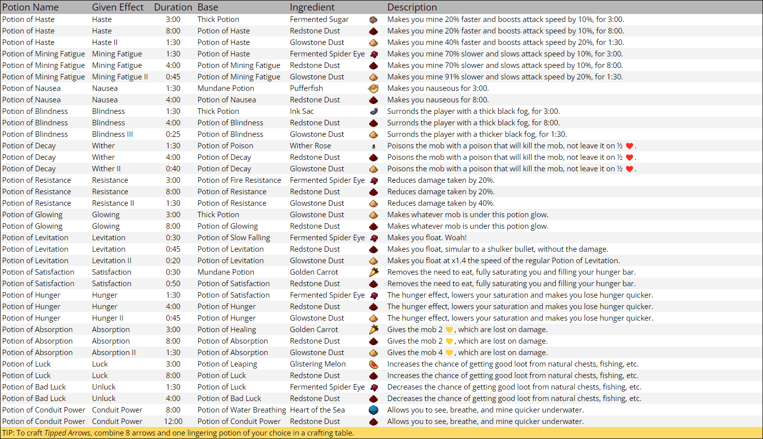 Potions and their Recipes