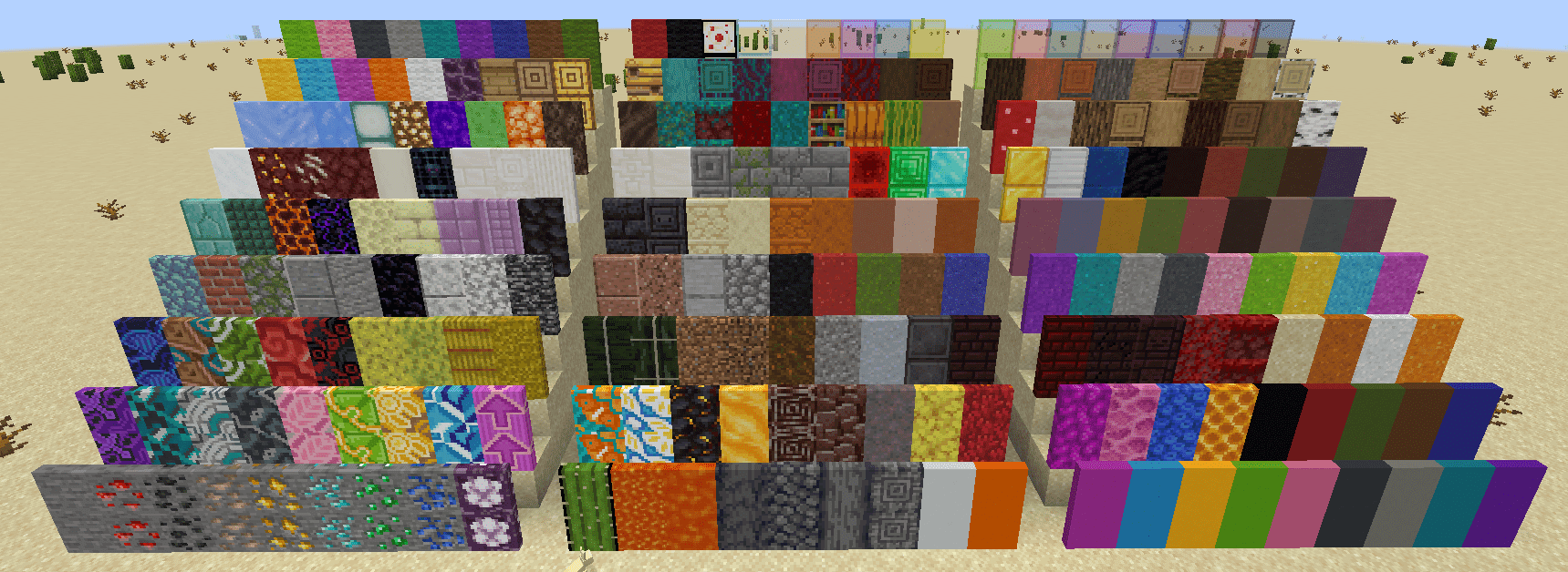 – This mod adds around 240 of blocks for every category.