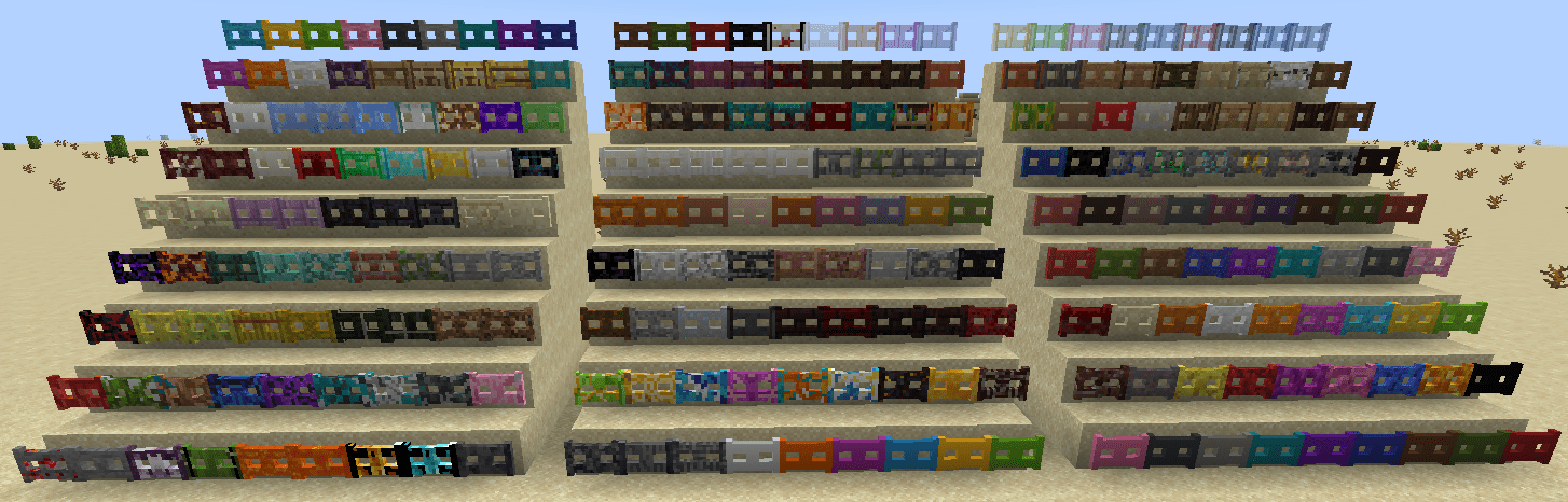 – You can use any blocks of the respective category from the vanilla game for the recipe. (For exapmple: for Frame Door you can use a Wooden Door, for a Frame Trapdoor you can use Iron Trapdoor)