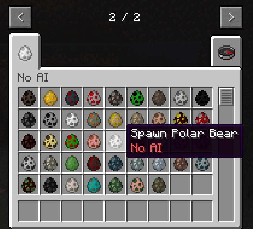 - No AI Spawn Eggs adds a new creative tab full of spawn eggs that will spawn mobs with their AI disabled.