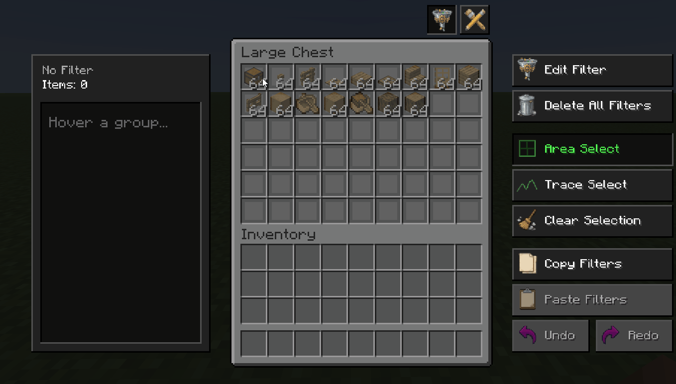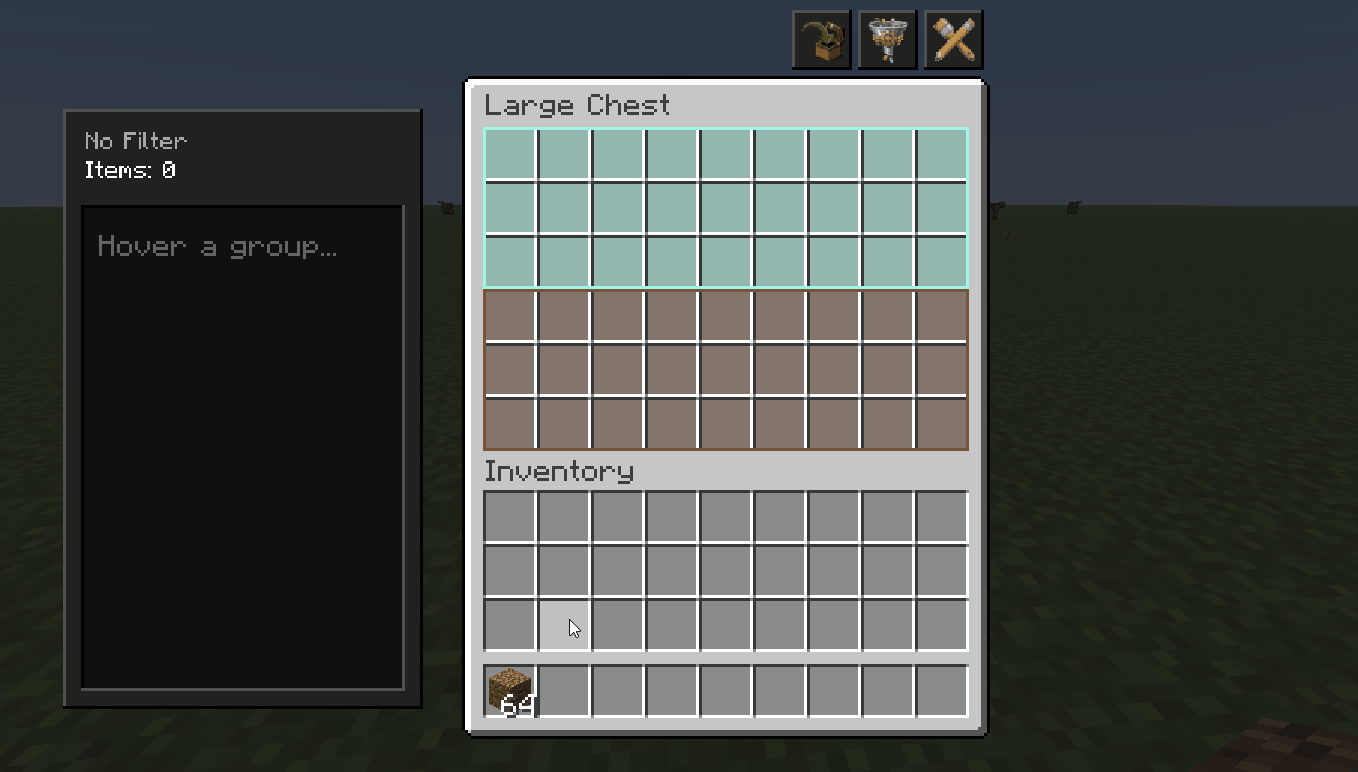 One-Click Inventory Auto-Sorting Mod lets you empty your inventory into chests with a single button press. Set up custom sorting rules once, then watch your loot fly into the exact slots you designed.