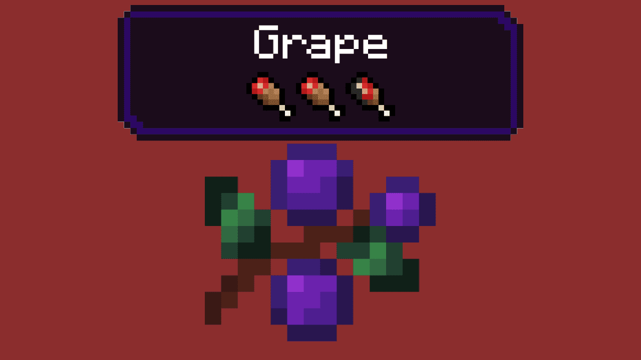 - Grapes is a new food source found within Better on Bedrock. You can only find Grapes inside of Taiga Biomes. Grapes can be planted and grown for an infinite source of grapes. Grapes gives 4 Hunger Points and takes 1 Second to eat.