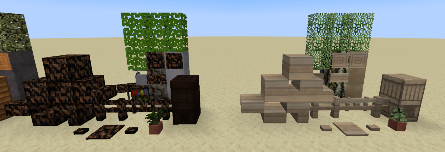 Productive Trees Mod (1.21.1, 1.20.1) allowing players to engage in tree breeding! By cross-pollinating different tree species, you can obtain unique hybrid varieties. Say goodbye to constructing with dull vanilla wood blocks—now you’ll have access to 160 new decorative blocks created from the tree breeds you’ve developed.