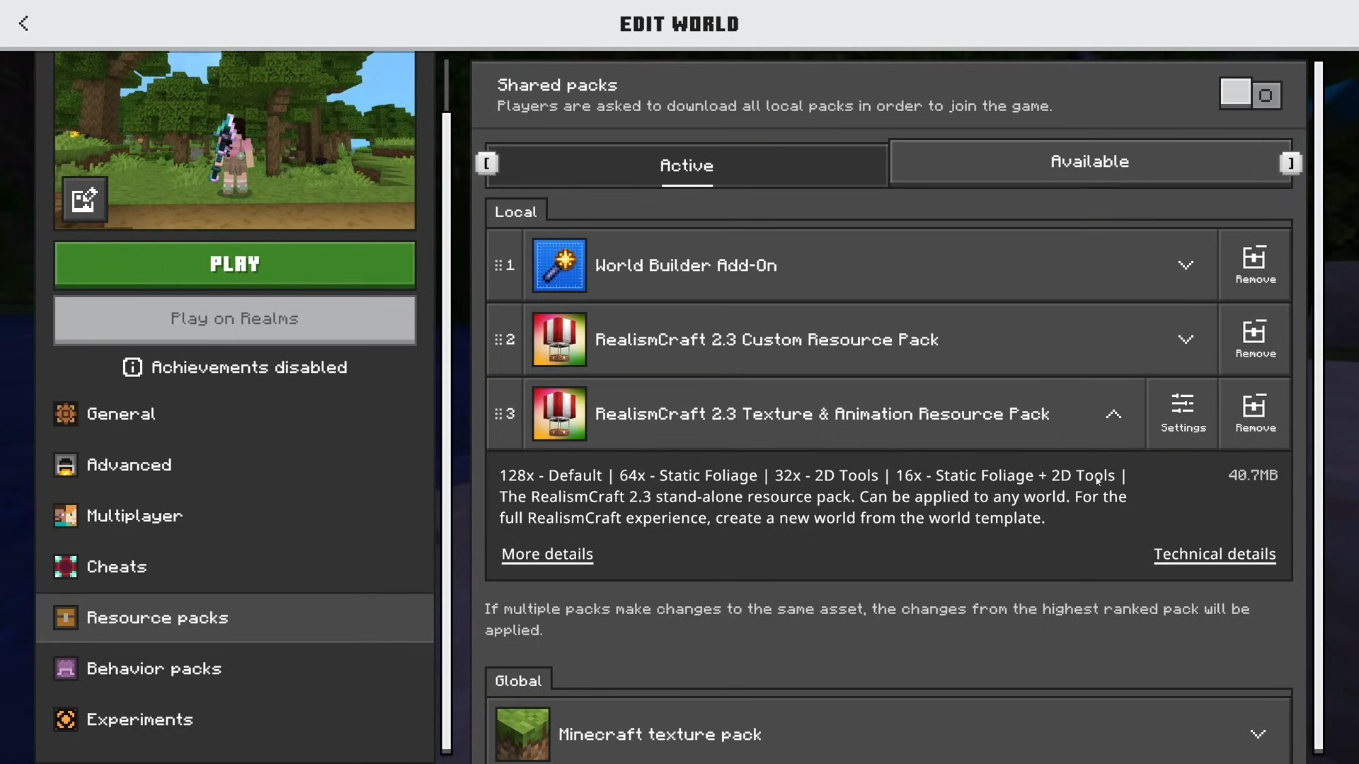 RealismCraft 2.3 Texture Pack (1.21) is a (texture pack + addon) for Minecraft PE that completely expands the world with a large amount of detailed content and much greater challenges compared to the original game. In short, this pack acts as an expansion for Minecraft. It changes and adds new graphics, lighting effects, and environments, while also introducing new creatures, mobs, items, weapons, and structures. Version 2.3 also includes optional sub-packs that let you disable 3D tools and animated leaves to improve performance.
