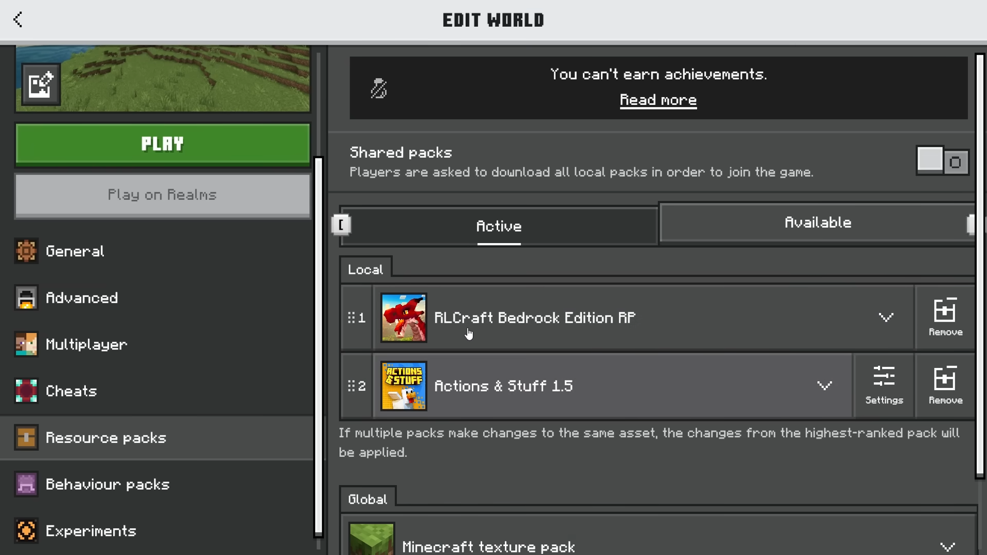 - Make sure you turn on the Experimental Gameplay.