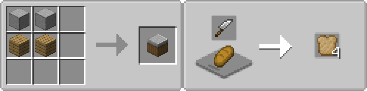 The main feature of Some Assembly Required is creating sandwiches using the Sandwiching Station. To create a sandwich, first create some bread slices using Farmer’s Delight’s cutting board. Then, place a slice of bread on the Sandwiching station and start adding ingredients. Once your sandwich is finished, you can pick it up by breaking it. A sandwich can be eaten to gain all effects from the ingredients, or you can place it down by sneak-right-clicking to decorate your world.