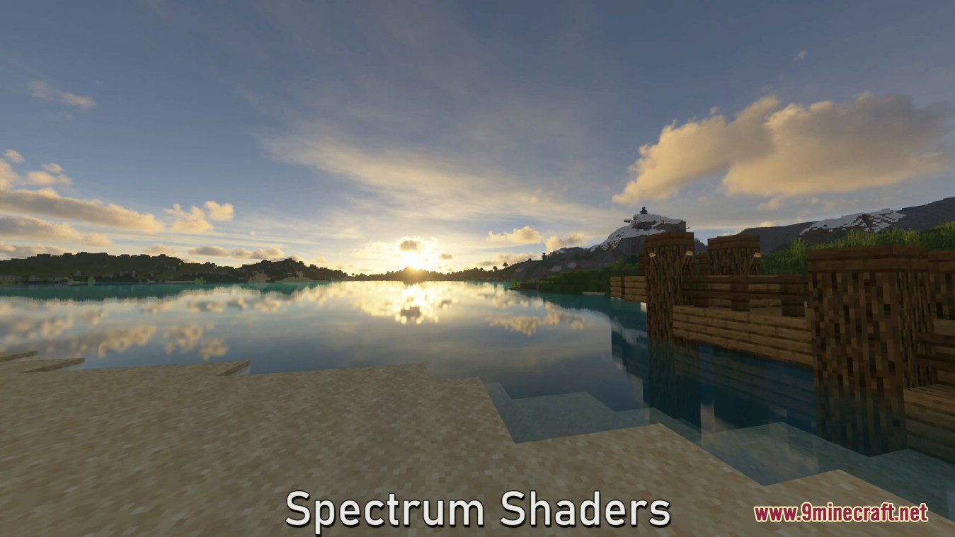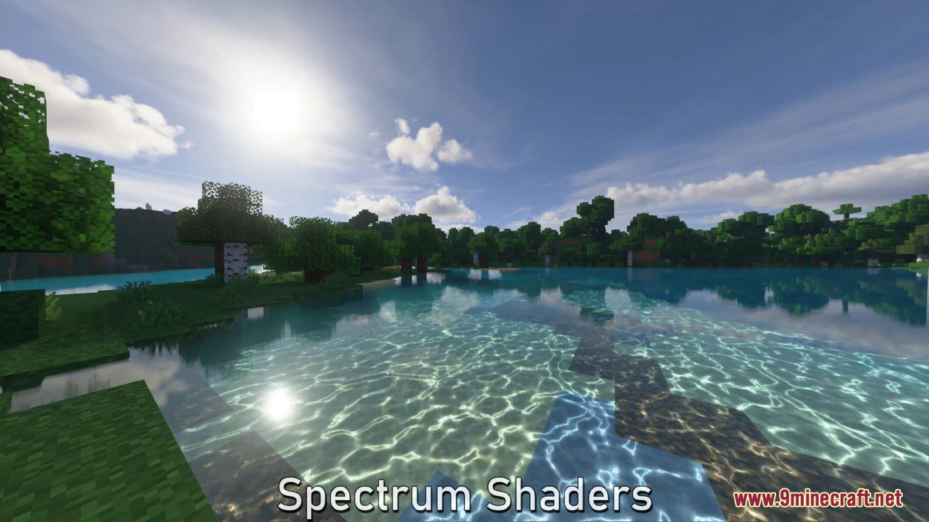 Spectrum ShaderPack (1.20.1, 1.19.4) is a Minecraft mod designed to provide a natural look and feel, which is very apparent when compared to other shaders like Prismarine Shaders or BSL shaders. It offers a more realistic aesthetic, showcasing a clear sky with cirrus clouds that suggest a warm, cozy day.