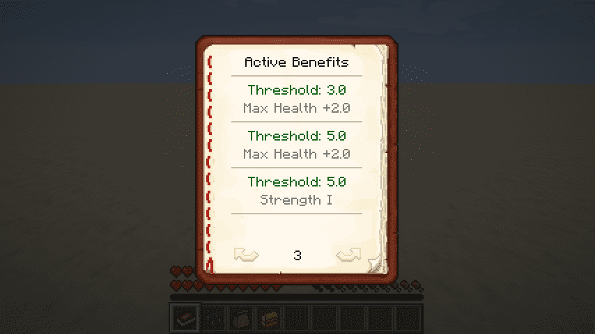 Once your diversity reaches certain (configurable) thresholds, you can gain various benefits, from attribute increases to potion effects (all configurable)