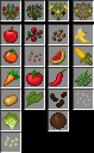 - Each crop bush type has its own unique drops.