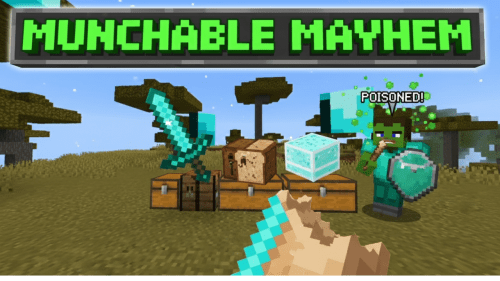 Munchable Mayhem Addon (1.21) turns Minecraft on its head by letting you eat almost anything imaginable....