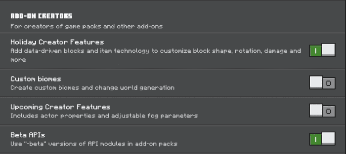 Once there, choose a world you want to apply this addon to and add the behavior pack and resource pack together. The “Holiday Creator Features”, and “Beta APIs” experiments must also be enabled. And that’s it! Your world is now ready for WorldEdit.