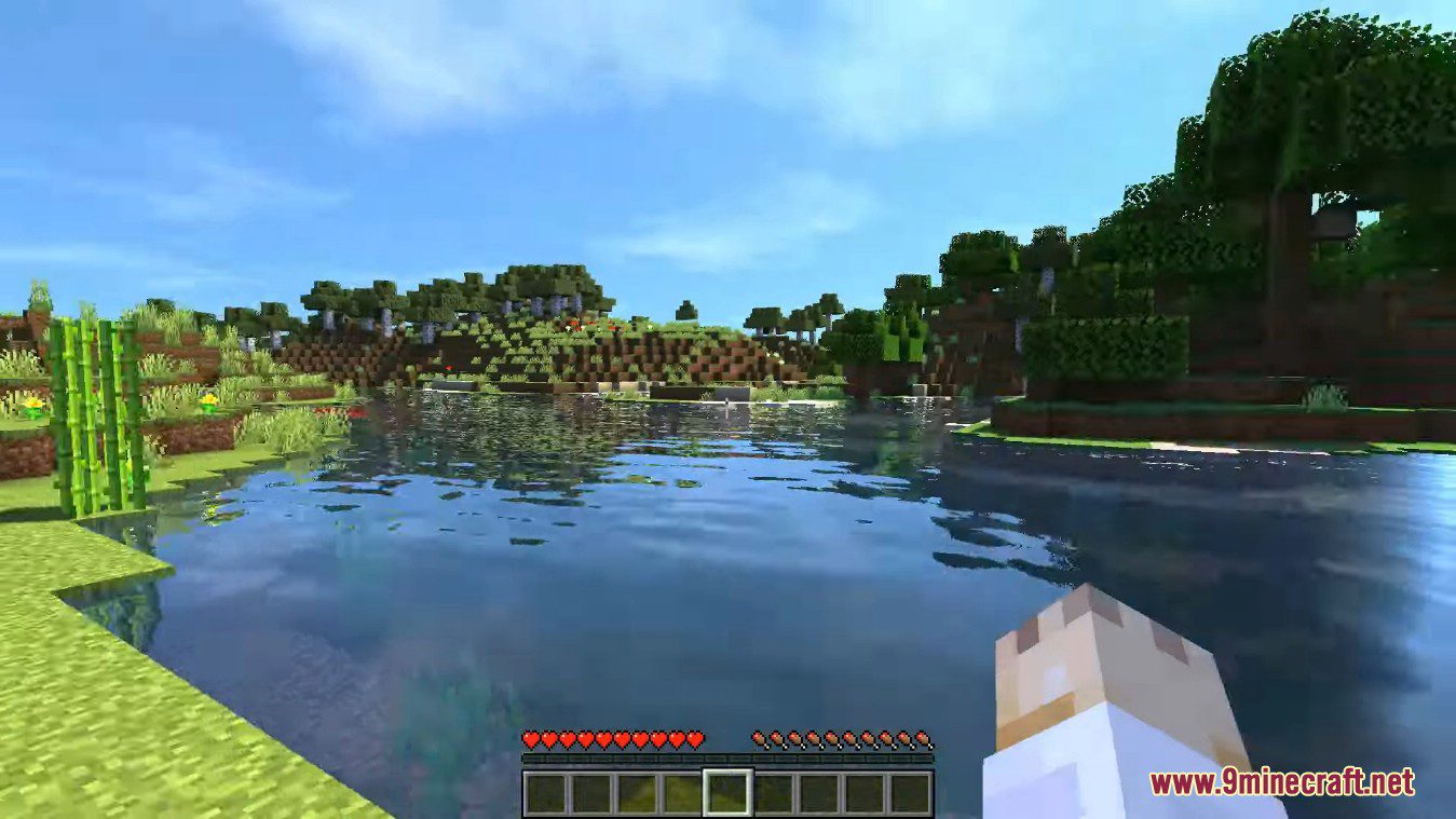 • Enhanced Water Visuals: This feature transforms water, making it as realistic as possible. Qualitatively drawn waves will appear, and on the surface, you can see detailed reflections and solar flares.